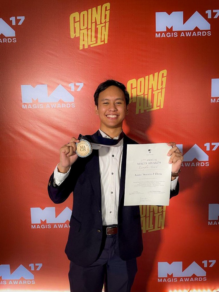 Xavier University – Ateneo de Cagayan – In a celebration of academic excellence and outstanding achievements, Andre Socorro F. Doria, an incoming senior of the DevCom Department received a prestigious honor at the recently-concluded 17th Magis Awards on July 3, 2023 at the XU Covered Court. Doria was bestowed with the esteemed Francis Xavier Exemplar Award for his remarkable feat as a Global UGRAD Exchange Student.